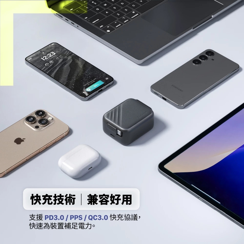 ▲ USB-C最高輸出35W,支援雙裝置同時充電,也支援 PD3.0 / PPS / QC3.0 快充協議,快速為 iPhone、iPad、MacBook Series 等裝置補足電力。