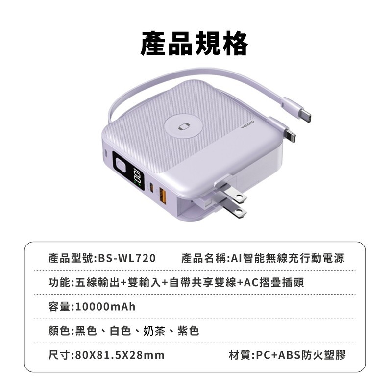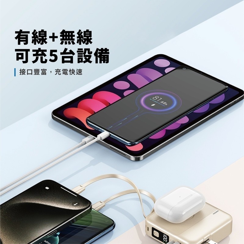 Type-C+USB-A+Type-Cable+Lightning Cable+無線充電: