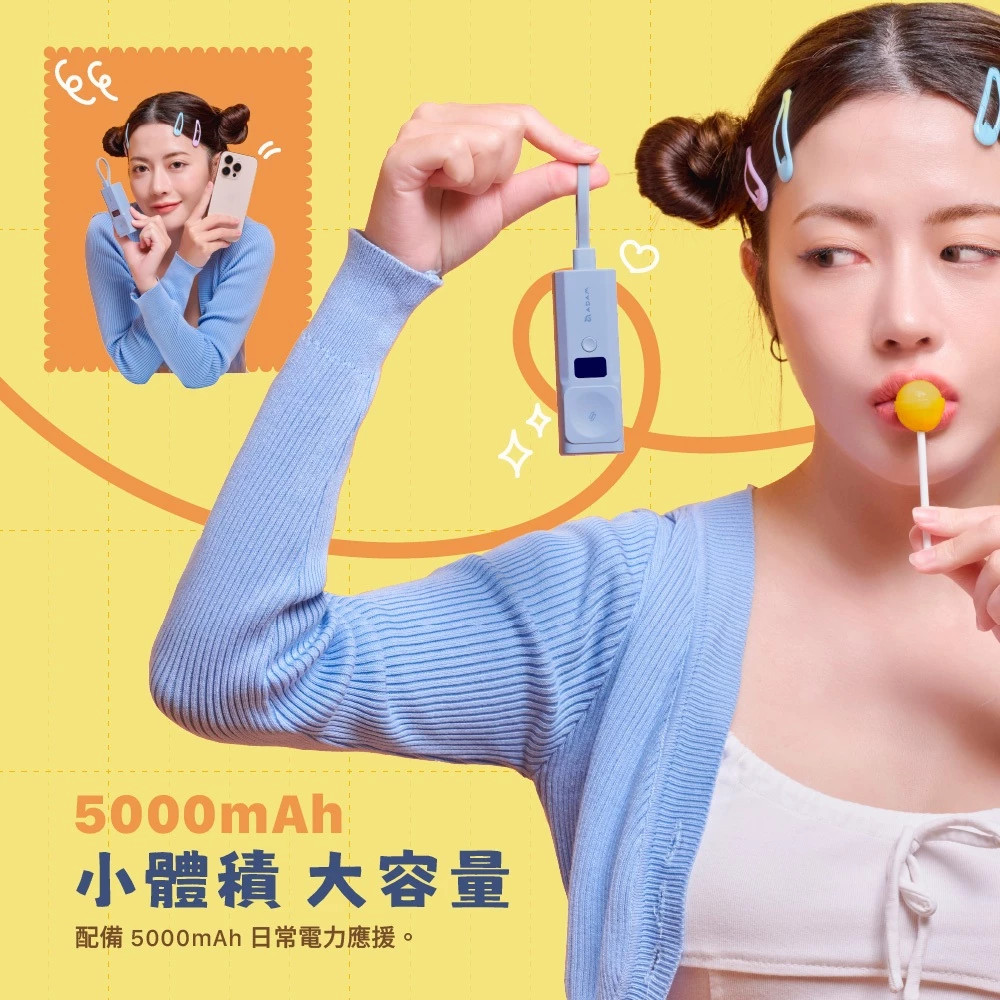 搭載5000mAh 僅需2小時即可將行動電源充飽,提供緊急時所需電力。