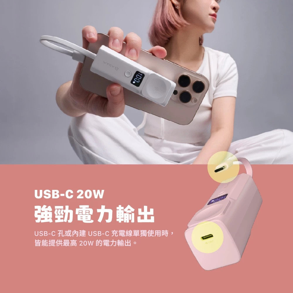 內建USB-C線材/USB-C孔,並支援輸出/輸入功能,外出攜帶無負擔。