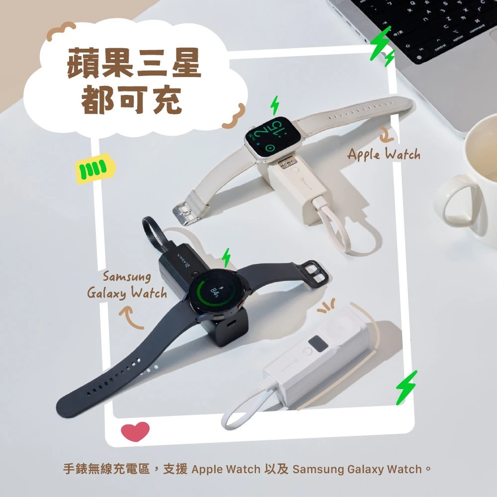 精巧利用空間,加入手錶無線充電區,並支援Apple Watch以及 Samsung Galaxy Watch。