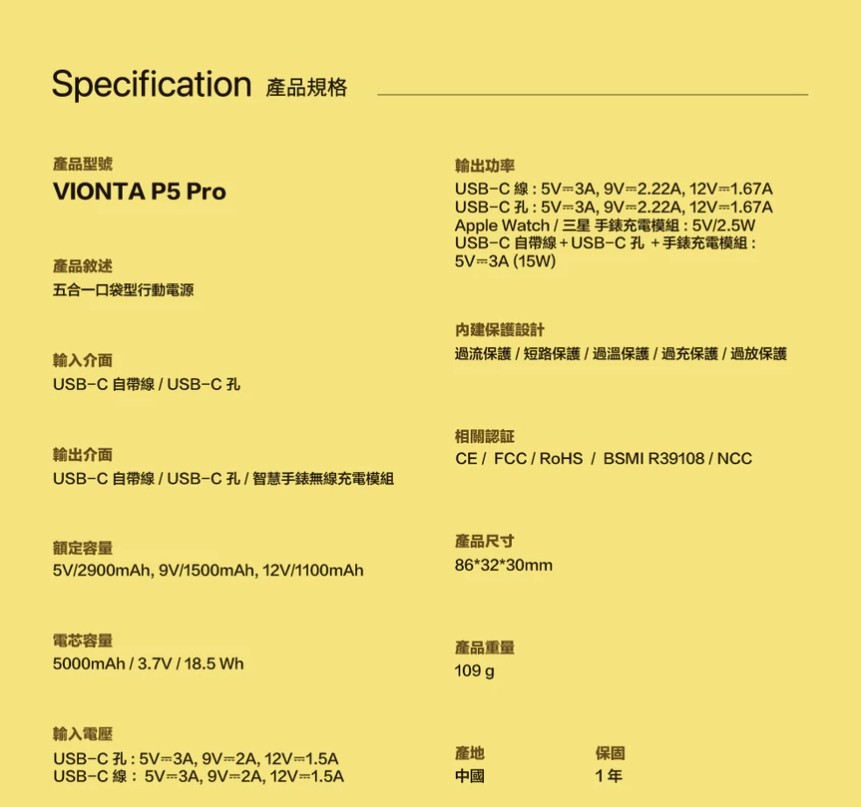 體積短小,重量僅有109克,輕便攜帶好收納,最高支援三種裝置同時充電。